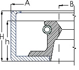 Anello di tenuta olio per alberi rotanti con scatolino metallico esterno rettificato o calibrato. Lo scatolino metallico previene il rapido invecchiamento della gomma esterna che può verificarsi sul tipo DRA nel caso l'anello venga fatto lavorare ad una temperatura vicina ai limiti per un lungo periodo di tempo