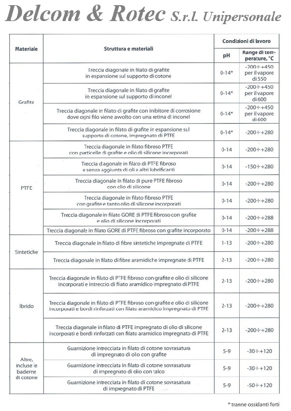 CONDIZIONE DI LAVORO: pH 5-9 - Range di temperature °C -30 +120